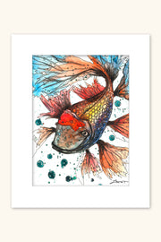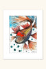 Art Print in photo mat is presented in clear plastic packaging. Image is reproduced in a high quality print.